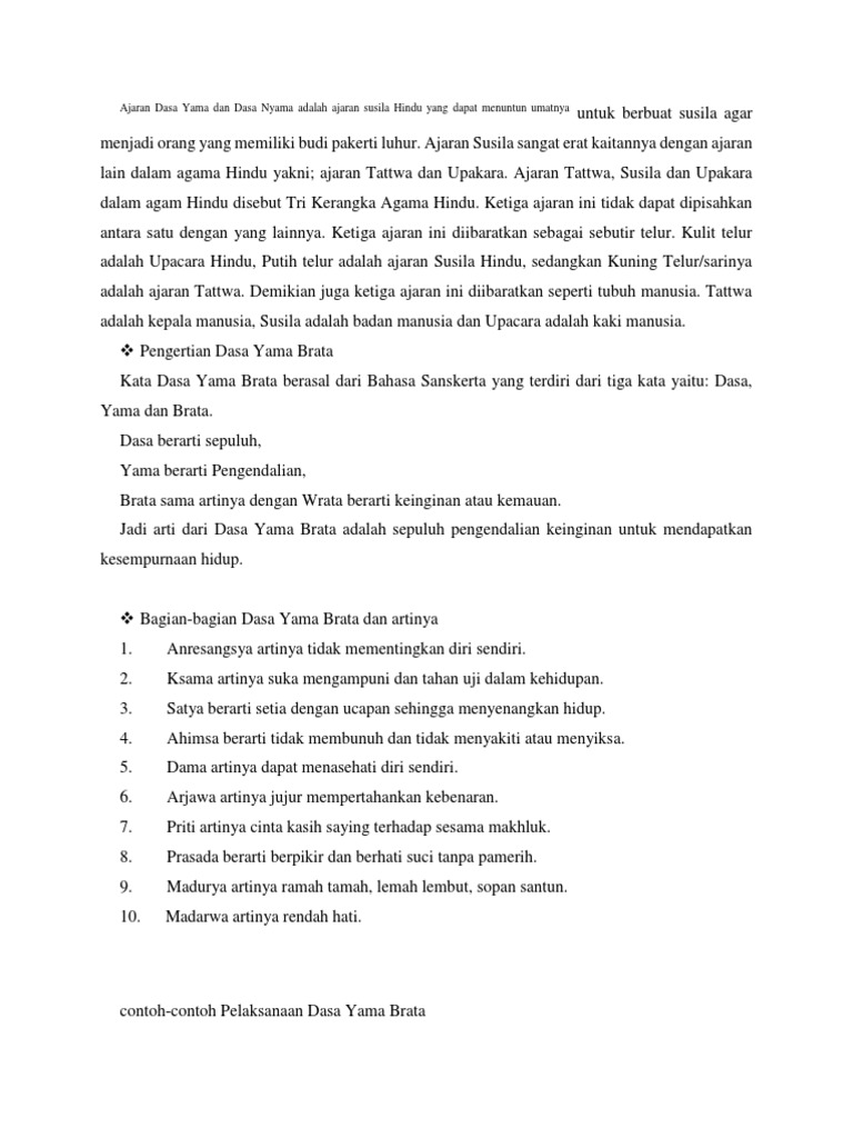 Ajaran Dasa Yama Brata