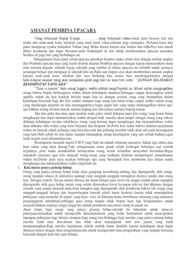 Doc Contoh Amanat Pembina Upacara Ke 1 Sdndua Denggen