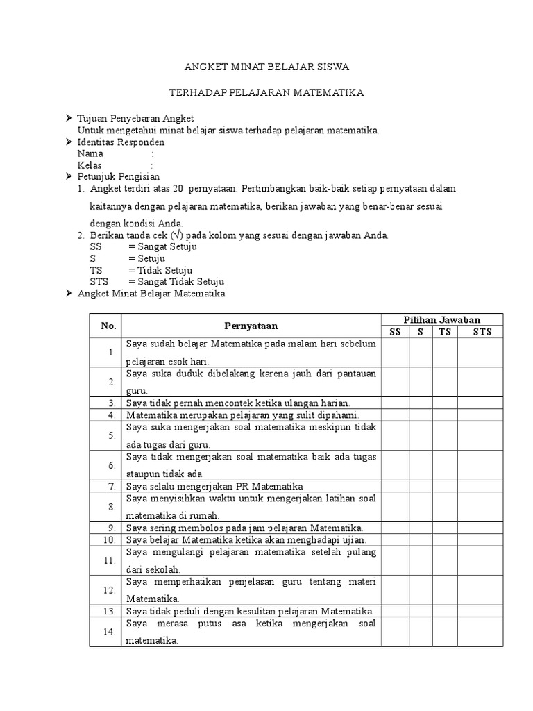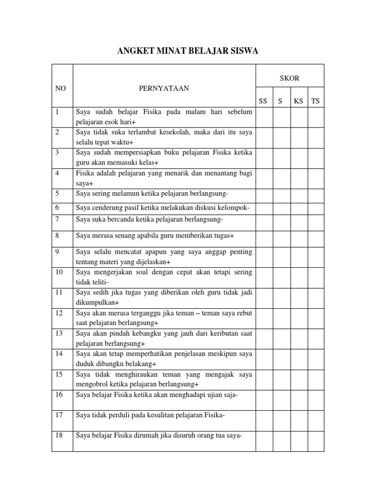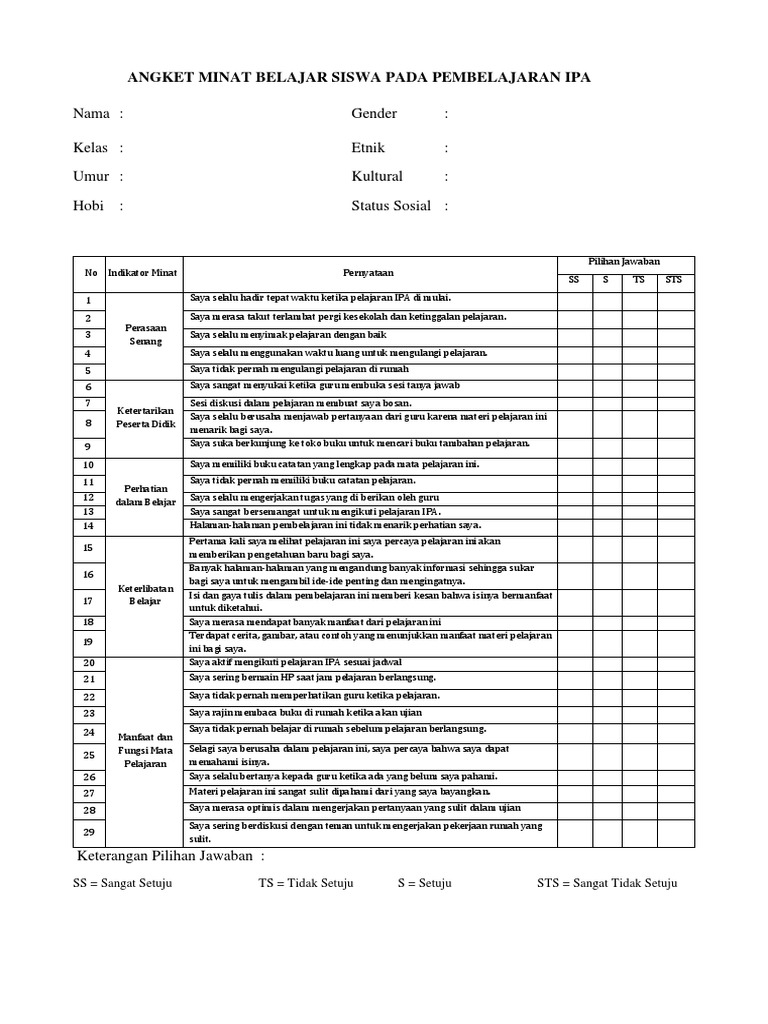Instrumen Angket Minat Belajar Ips 1 Saya Tertarik Belajar Ips